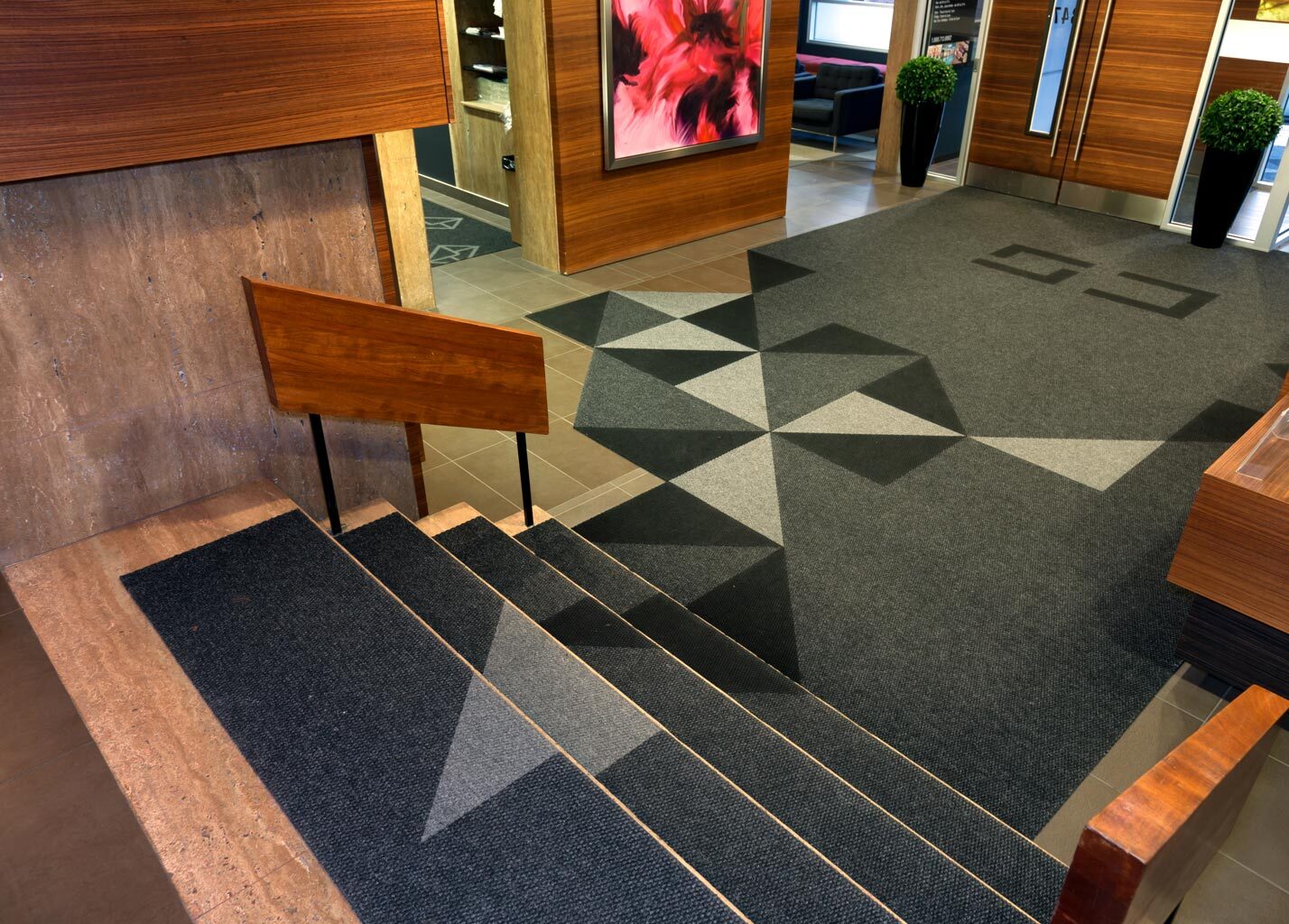 Напольное решение модульными ковровыми плитками KOVROLAN придает респектабельность любому помещению и прослужат долгие годы.